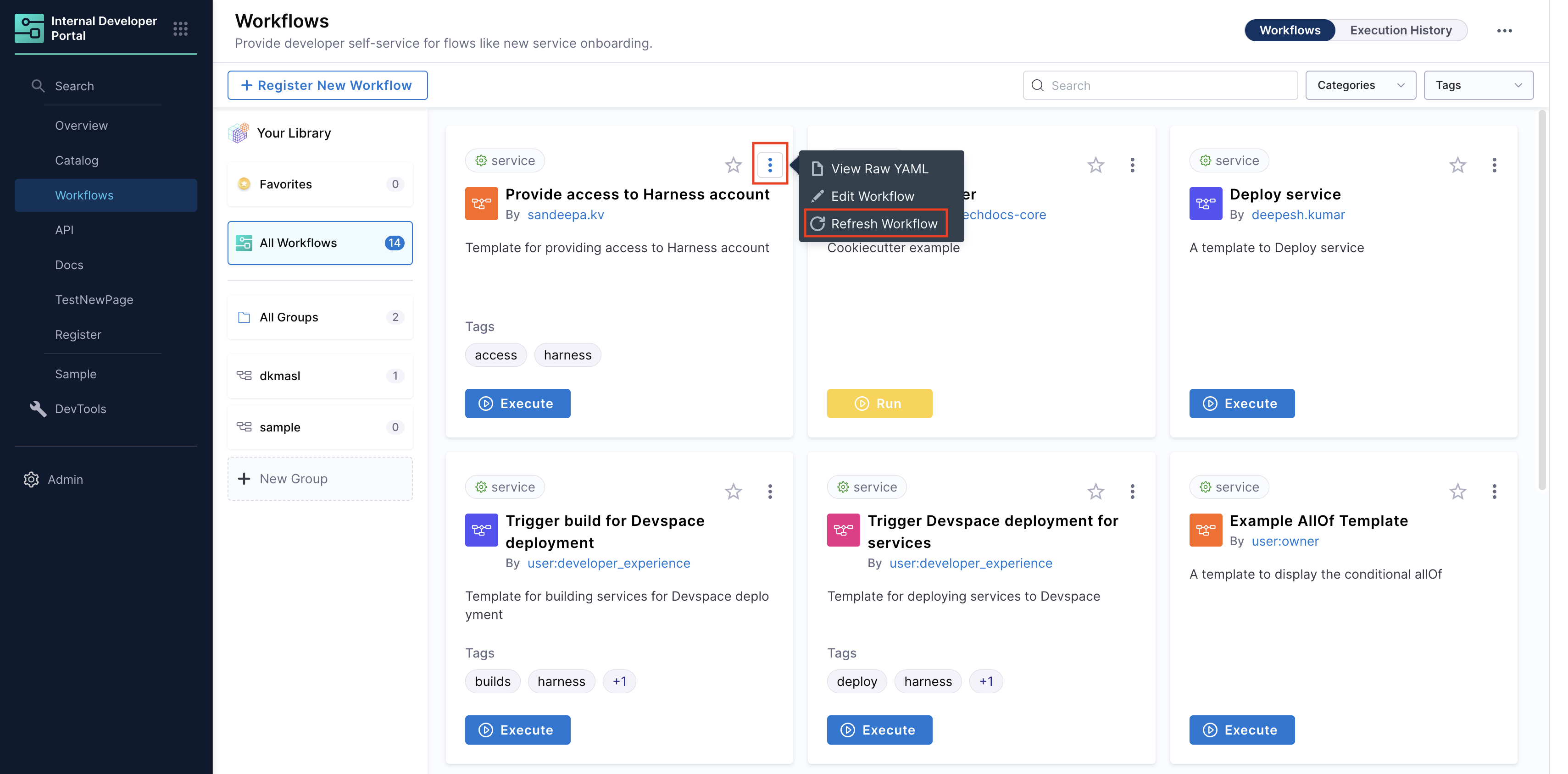 Managing Workflows in Harness IDP