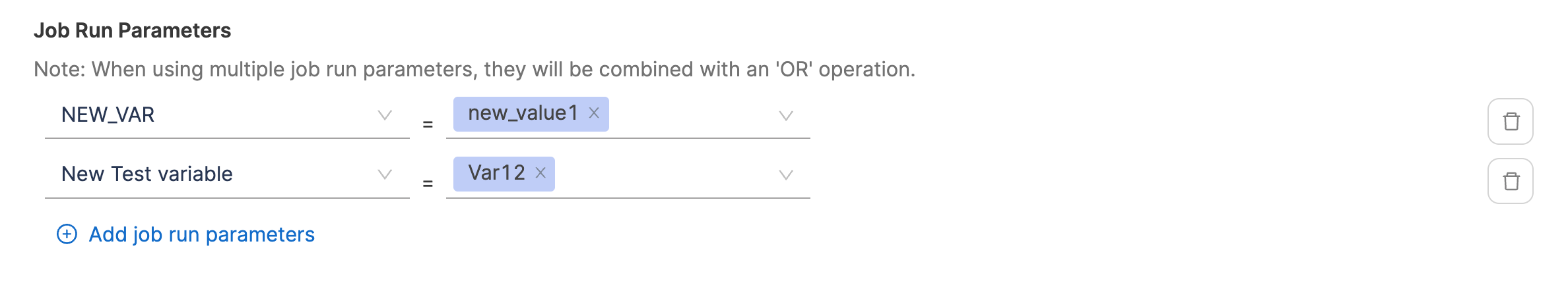 - Define job run parameters in key-value pairs. When using multiple job run parameters, they will be combined with an 'OR' operation. Similarly describe what defines a deployment causing failure based on the jobs completed or jobs started events in the selected time range.