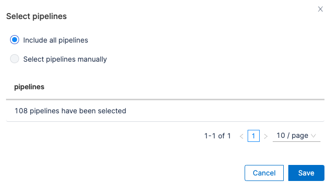 Configure additional attributes to identify deployments that result in failure. By default, all pipelines are included, but you can customize the selection by manually specifying which pipelines should be included.