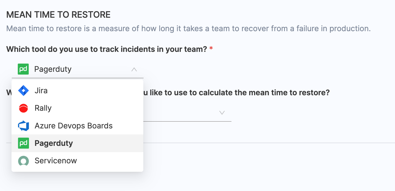 - Choose ServiceNow as the tool that you use to measure change failure rate in your team.